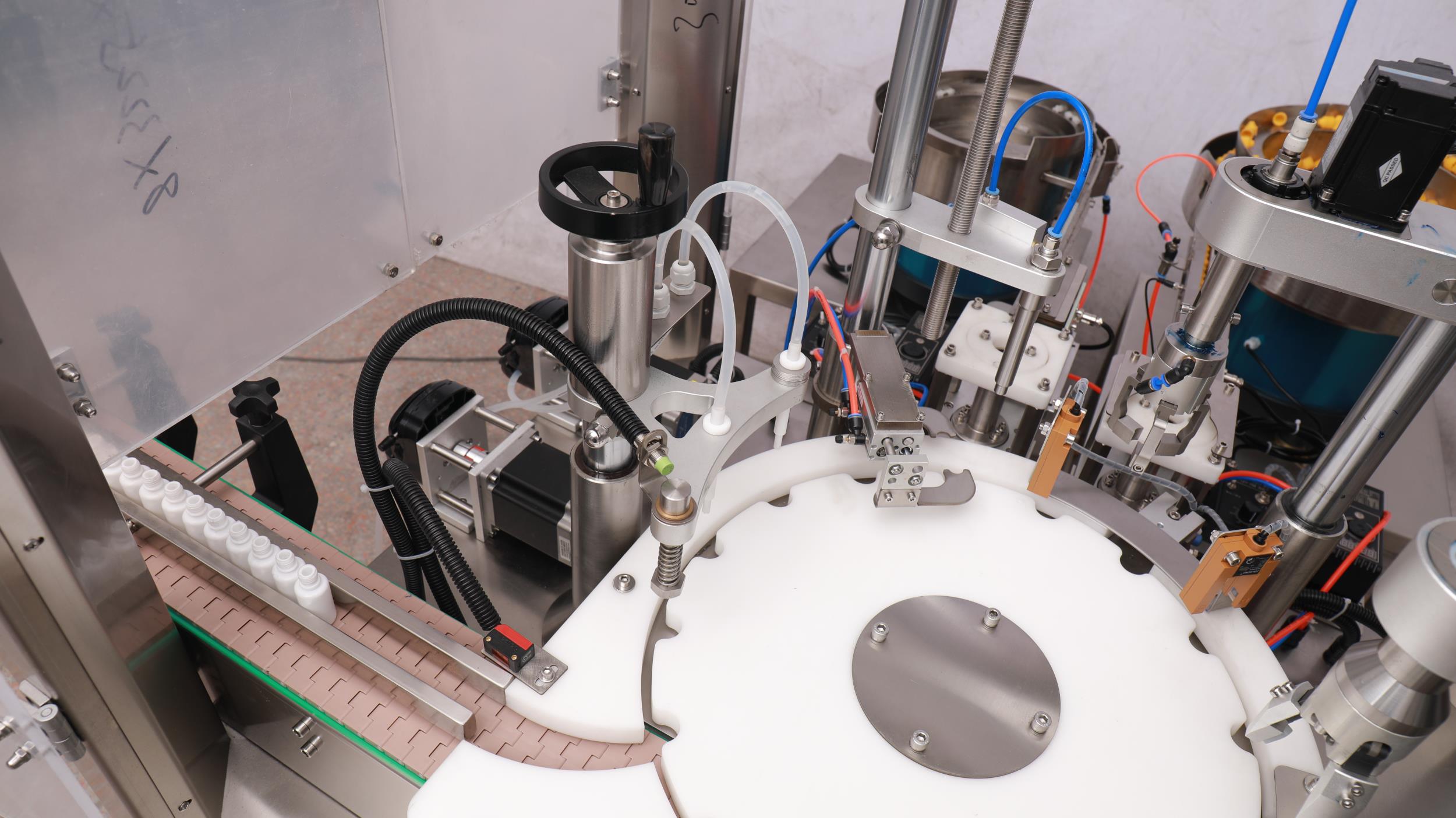 全自動灌裝旋蓋一體機(jī)(蠕動泵灌裝+擺臂式上蓋,內(nèi)塞加外蓋)